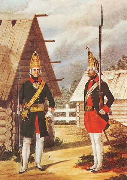 Обер-офицер и гренадер (1756-1761 гг.). Неизвестный художник XIX в. Русский музей. СПБ