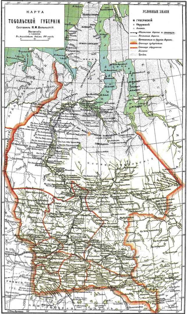 Тобольская губерния, ограниченная с юга "Горькой линией" (Омск - Петропавловск - ст.Пресногорьковская)