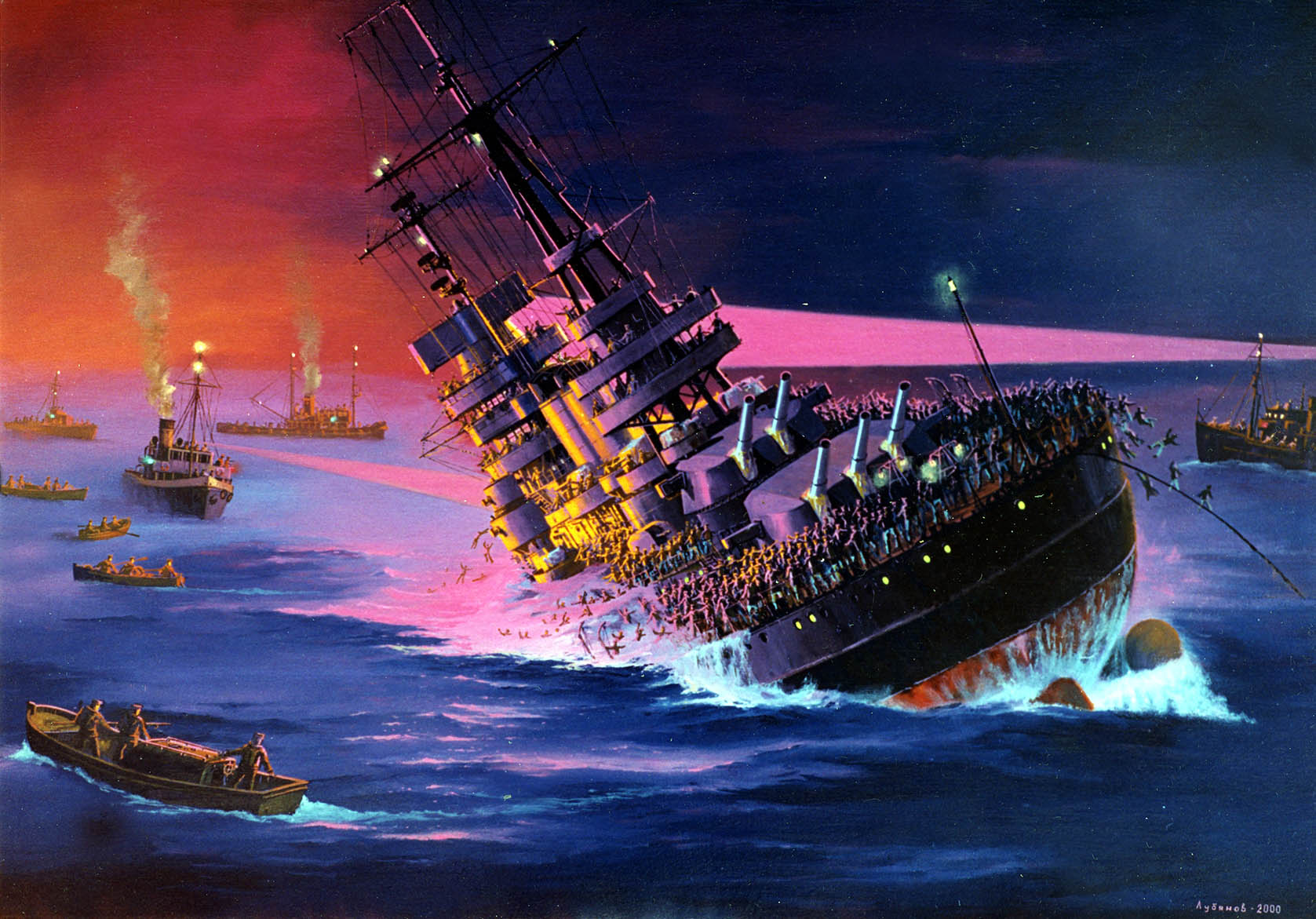 Женщины валялись среди надгробных венков, рыдали и голосили, проклиная море, судьбу, корабль, адмирала... В их глазах еще стояло страшное ночное видение: черная туша опрокинувшегося линкора, скопище людских голов в воде, бурлящей от вырывавшегося из корпуса воздуха, от предсмертных вздохов, от взмахов сотен рук, плывших и утопавших. Они плыли к берегу, где с высоты железнодорожной насыпи взывали к ним их жены и дети. Они тонули у них на глазах, и жены, мертвея, превращались во вдов, сыновья - в сирот. Стена людского горя остановила ночной экспресс, шедший в Севастополь 29 октября 1955 года... Машинист и пассажиры, разбуженные горестным воем, вглядывались в темень бухты, исполосованную лучами прожекторов. Там разворачивалась одна из самых страшных в истории мореплавания трагедий...